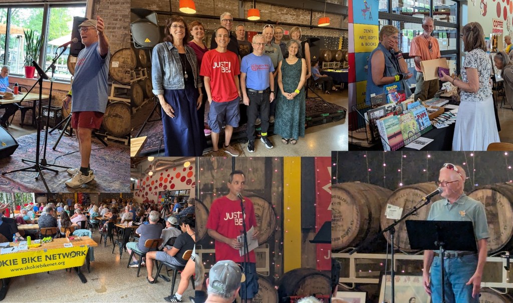 Back for the third year, “Tales from the Trails” featured nine stories presented to an audience of around 130 friends and neighbors with accounts of life experiences while riding a bike.